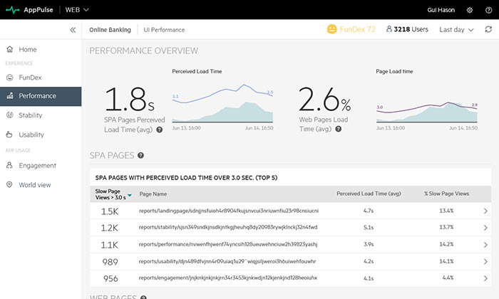 Measure the real user experience of Single Page Applications (SPA) and understand web page load time as perceived by your users.  Now you can measure Single Page Application page performance as perceived by your users, measure SPA page load time, errors, and volumes. Once you identify performance issues, you can drill down to the page calls breakdown for faster problem resolution.
