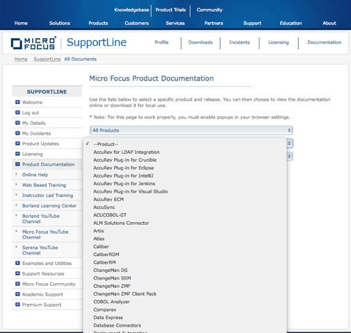 Full documentation for all Micro Focus products is kept under the Product Documentation menu.