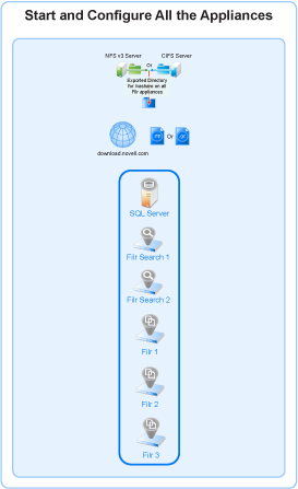 Expandable Deployment: Repeat the above steps starting with 2 - Select an appliance. until all of your appliances are started, configured, and running. Then go to Section 8.0, Creating an Expandable Filr Deployment.