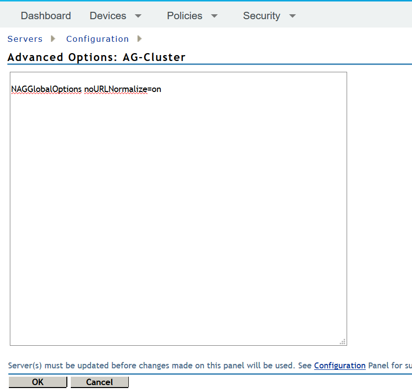 2. In the Advanced Options window, add NAGGlobalOptions noURLNormalize=on.