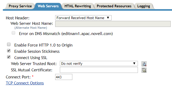 • Web Server Trusted Root: Select Do not verify.