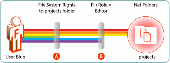 Figure 4-2 Users’ effective rights to Net Folders are controlled by the file system or library where the Net Folder resides and the Net Folder role that these rights qualify them for