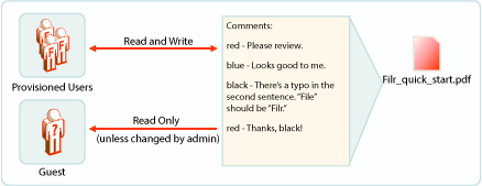 Comments are linked to the files that are commented on. All users, including Guest, have Read and Write access to comments on the files and folders that they are allowed to see. If there is a risk of Guest users logging inappropriate comments, rights can be changed to Read Only, as indicated in Figure 5-1.