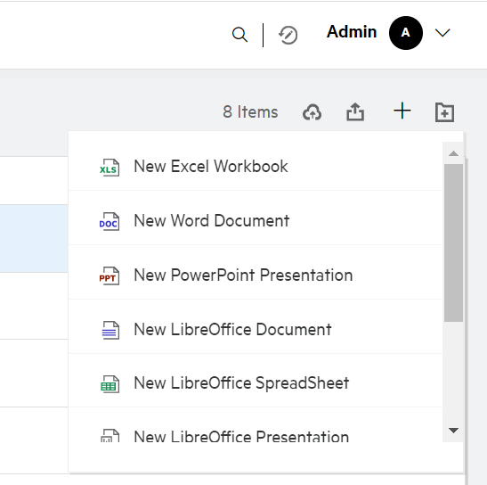 You can now edit the custom templates or create a new file within the Filr. The Create New File option is available only for Advanced Filr Edition and Content Editor has to be enabled by the Administrator. In My Files and NetFolders area, you can find this option at the root level and folder level, in the Shared With Me and Shared By Me area, you will find this option only at the folder level.
