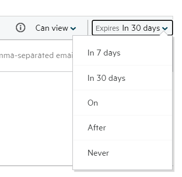 Expiry: The date of share expiry. After this date, you no longer have access to the shared item.
