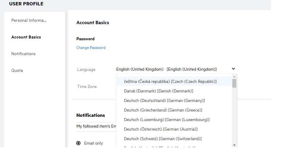 When a user is nearing to exceed or exceeds the data quota, a warning message displays on the user’s profile page informing the user that he or she is approaching the data quota limit. Also, an email notification is sent to the user when the data quota is exceeded.