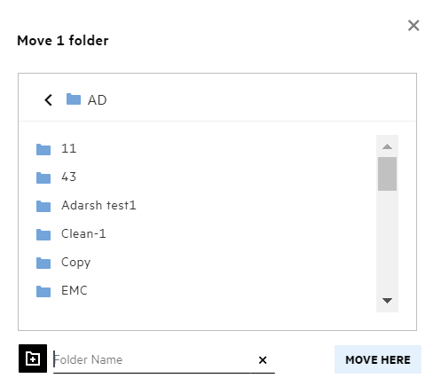 On selecting Folder, the Search Folders field is displayed. Enter the folder name or the first three alphabets of the folder name. All the folders with the folder name matching the entered string in the search field are listed for selection. The folders from all the Filr work areas for which you have access (My Files, Shared With Me, and NetFolders) are listed. Hover over the folder name to know the exact path of the folder.