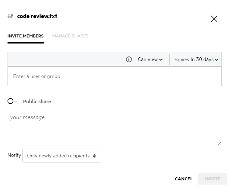 Share Link: The file can be re-shared using the share link.