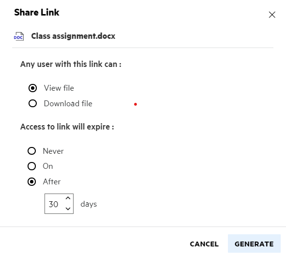Select the type of link you want to generate and make the expiry settings for the link. Click GENERATE.