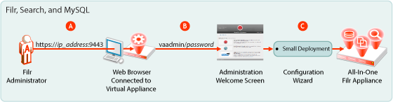 Second, access and configure the Search appliances through a browser, logging in to the administration console, and running the configuration wizard. When you finish this step, your Search appliances are running and ready to provide indexing services for Filr. For details, see |