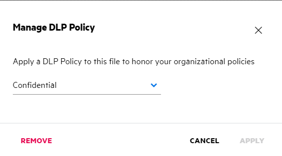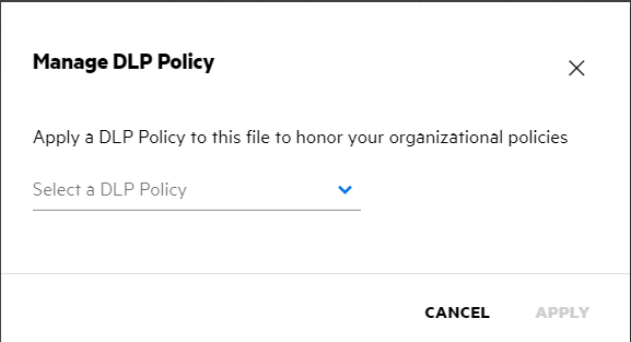 If the DLP is enabled and a policy is not applied at the netfolder level, the DLP Policy button will appear above the Details tab. You can click this button, select a policy, and apply it to the file.