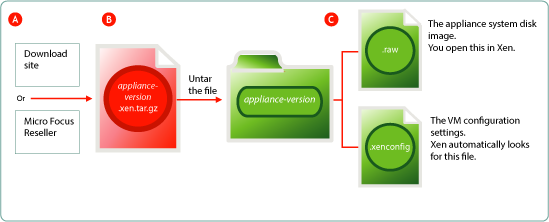 Figure 2-3 Downloading and Preparing OpenText Appliances for Xen