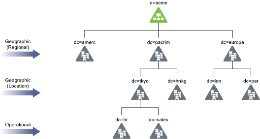 With a forest designed in the form of a pyramid, managing and initiating changes to large groups, and creating logical partitions are easier. This structure is best suited for large organizations with operations spread out across the globe.