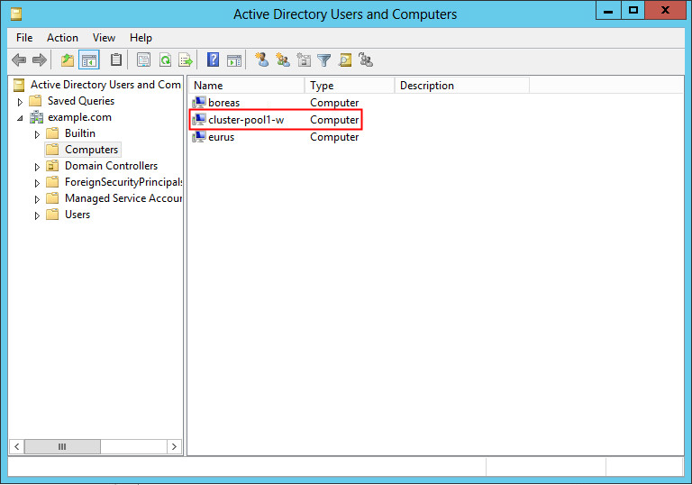 Verify that the service principals and computer objects are created for the cluster node and cluster resource.