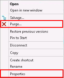 Right-click a Windows mapped network drive or folder, then click Purge or Properties > Purge.