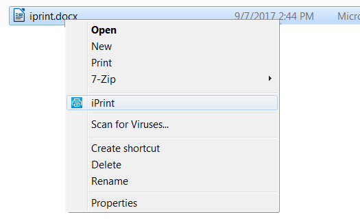iPrint is now available as a context menu option on Windows. To print from the Context menu do the following: