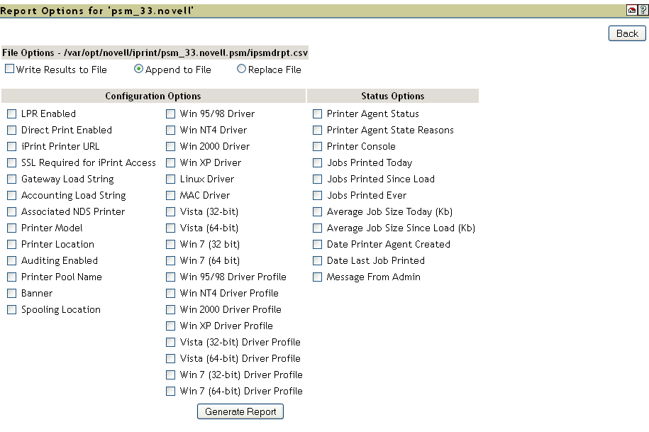 Figure 3-10 Generate Report Options Page