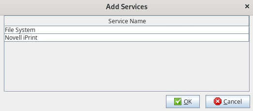 NOTE:If the Source server is OES, the Add Services dialog box displays only File System and iPrint service. Only these two services can be migrated using GUI.