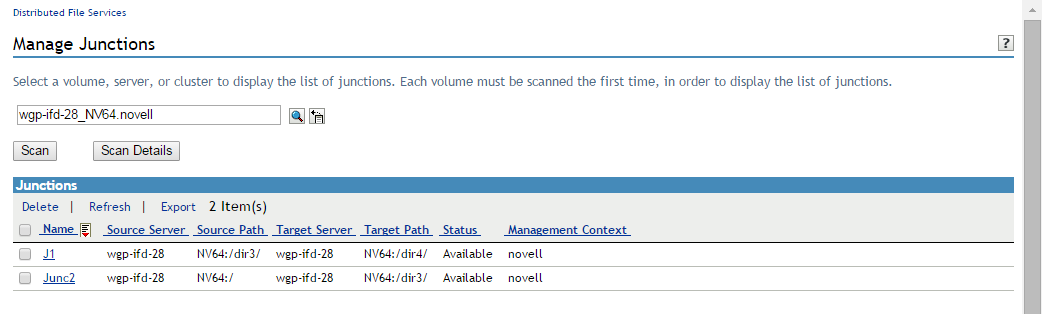 In iManager, select Distributed File Services > Manage Junctions.