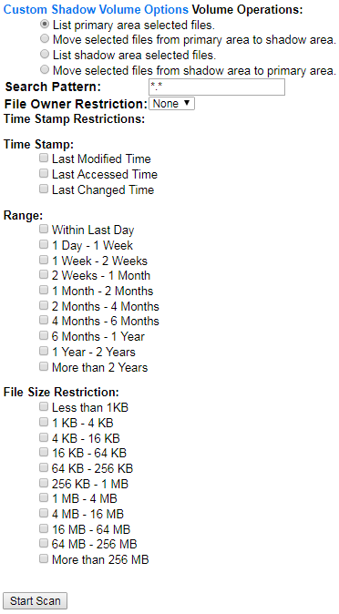 9. After you specify the volume operation and search criteria, click Start Scan.