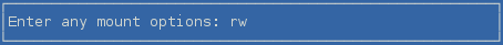 Specify the default set of options to use when mounting the volume after a reboot, then press Enter.