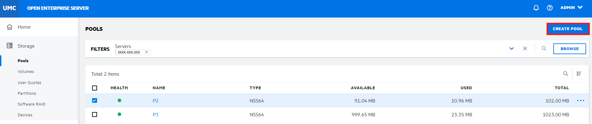 Storage > Pools.