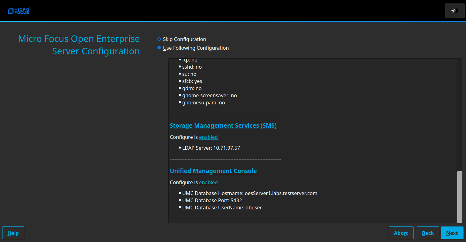 UMC ships with PostgresSQL by default. The database port number is 5432 and eDirectory API port is 9010 by default and can be modified if necessary.