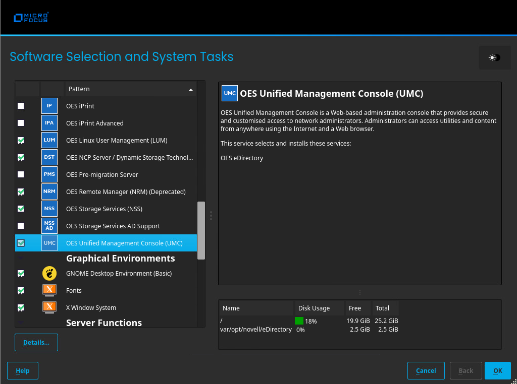 NOTE:The OES eDirectory is automatically selected.