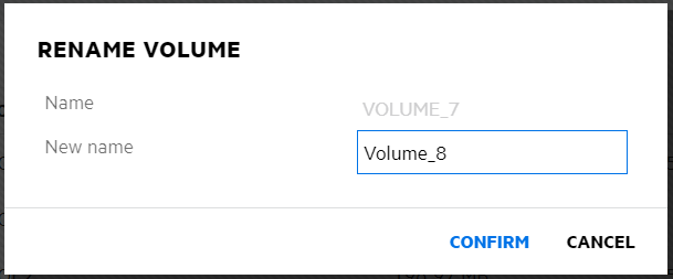 Specify the new name for the volume, and then click CONFIRM.