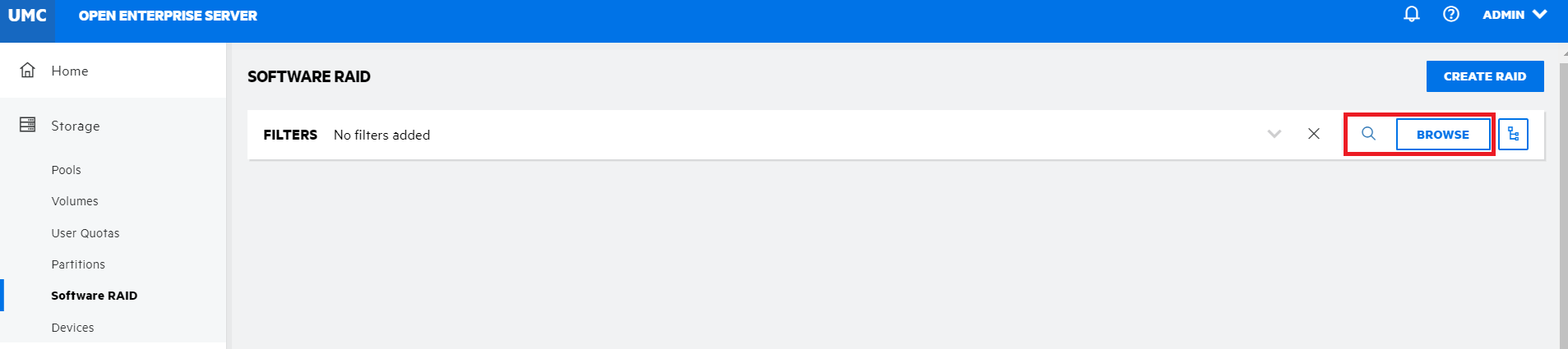 Search or browse the servers to list the RAID devices associated with them.