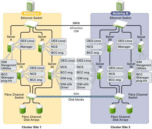 Business Continuity Clustering supports up to four peer clusters that are running OES 23.4 and Novell Cluster Services.