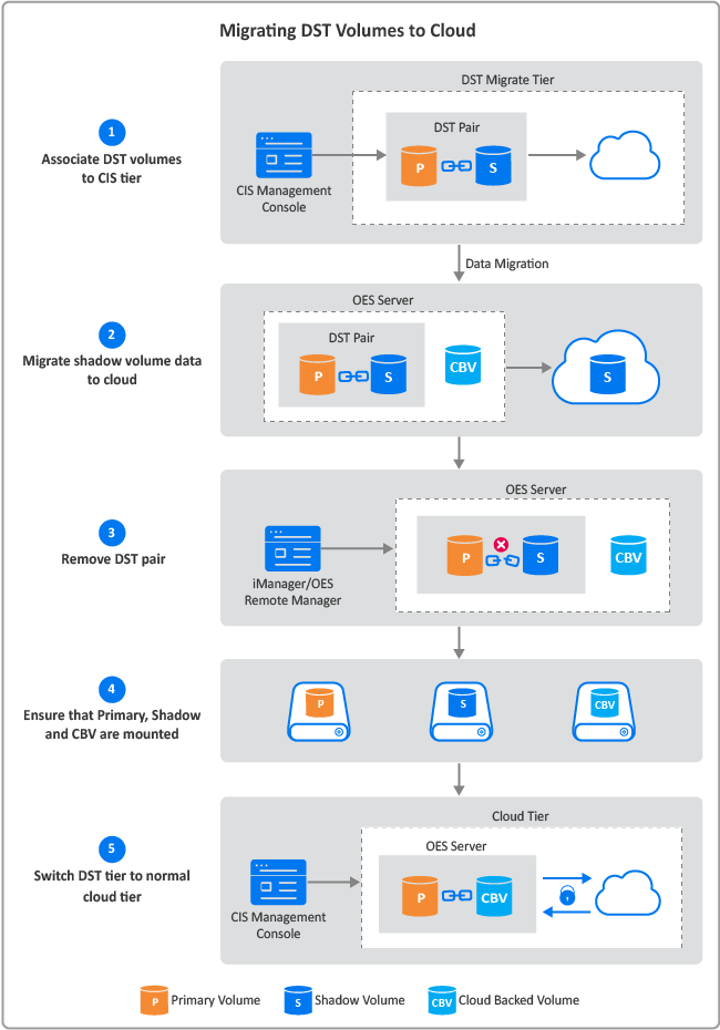 This section describes how to migrate DST local and cluster volumes to cloud storage.