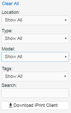Quick Access (bookmark) Printers: Printers can now be filtered on location, type, model, and tags. You can also filter with the Search field, just type description or any such printer details. The browser url can be bookmarked and shared.