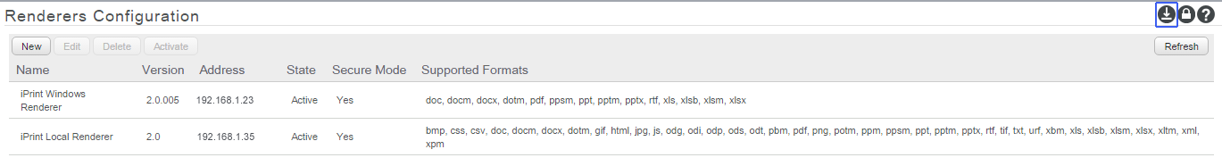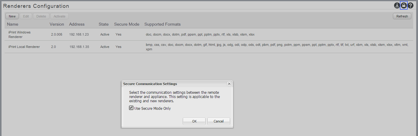 Secure settings for renderers icon. This setting impacts all the renderers displayed on this page.