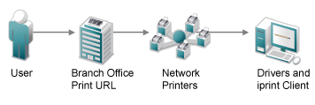 Figure 1-4 How iPrint Helps You Complete Print Jobs at a Remote Office