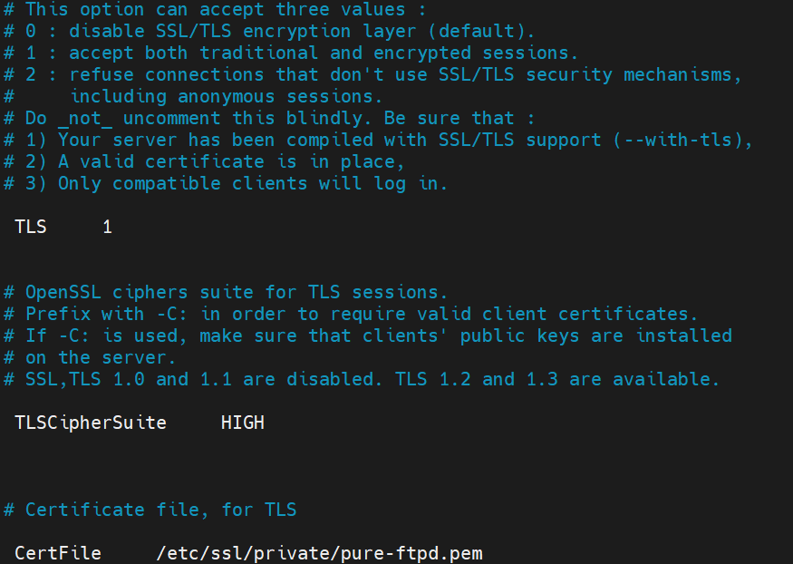NOTE:It is very strongly recommended that you read through the entire /etc/pure-ftpd/pure-ftpd.conf file and be familiar with the available parameters and settings.