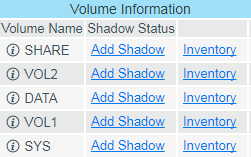 For example, the volume SHARE is the NSS volume that is planned to be used for the secondary volume. The volume is in the Volume Information list with a Shadow Status value of Add Shadow.