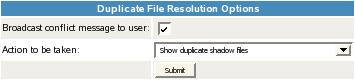 In the Duplicate File Resolution Options area, click Submit to save and apply the change.