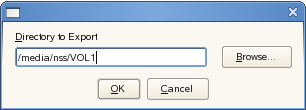 2. Specify the NSS volume that you want to export by typing the Linux path for the volume, or browse the Linux file system to locate and select the NSS volume, then click OK.