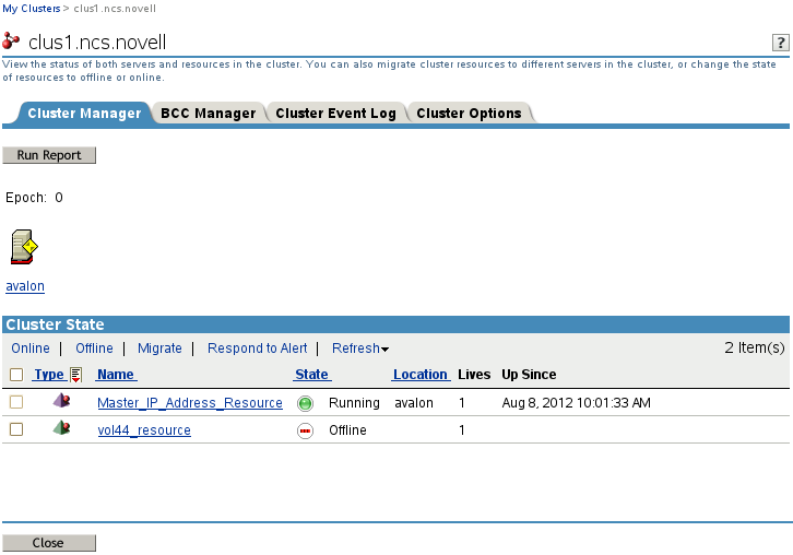 1. On the Cluster Manager page, select the check box next to the volume group cluster resource, then click Offline. Wait until the resource is offline to continue.