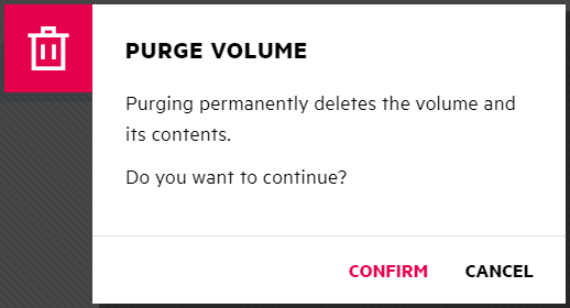 Purge: You can manually delete one or more deleted volumes and can no longer be salvaged or recovered.