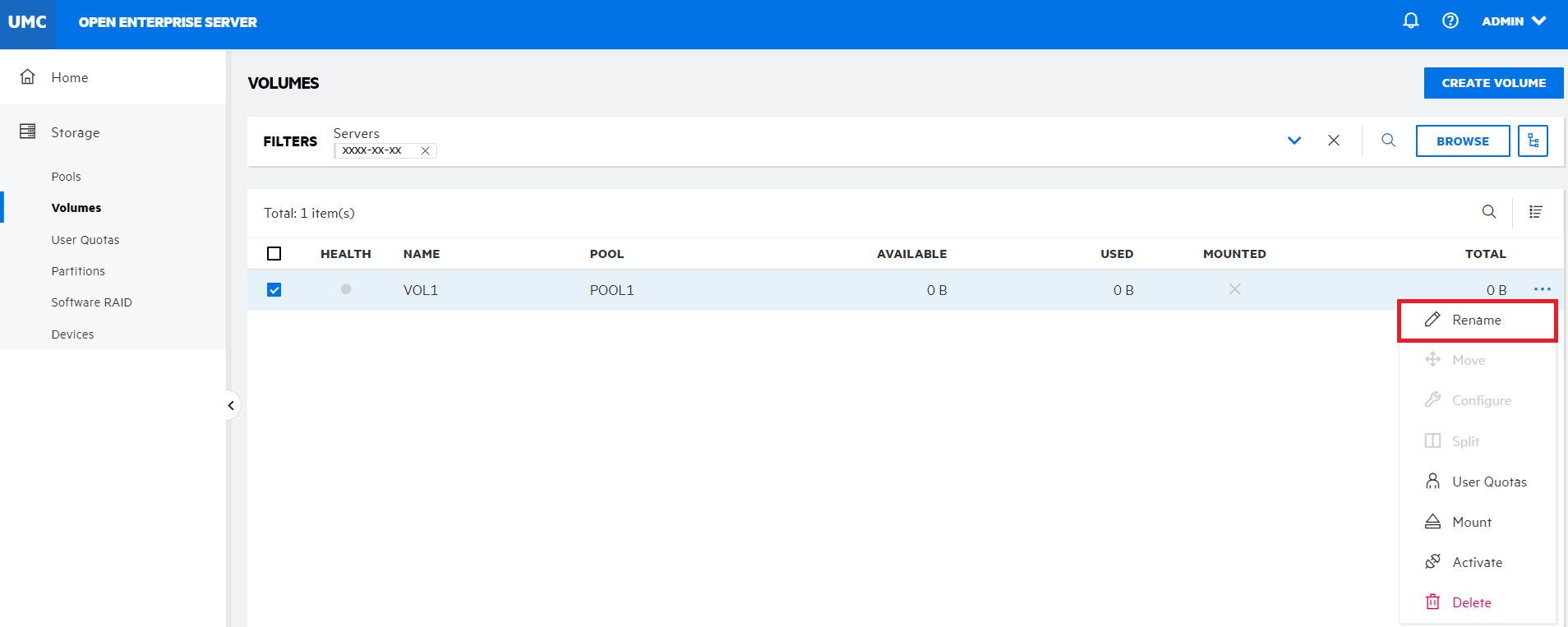 1. In UMC, click Storage > Volumes.