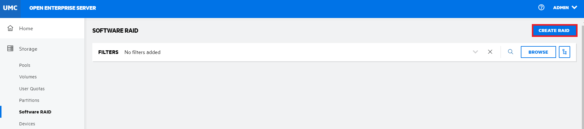 1. In UMC, click Storage > Software RAID.