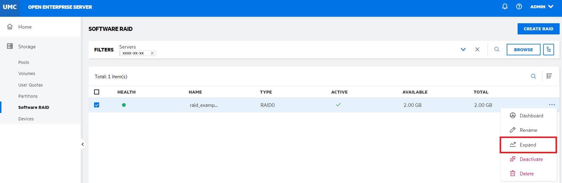 If the software RAID device contains the maximum number of partitions, the Expand option is disabled.