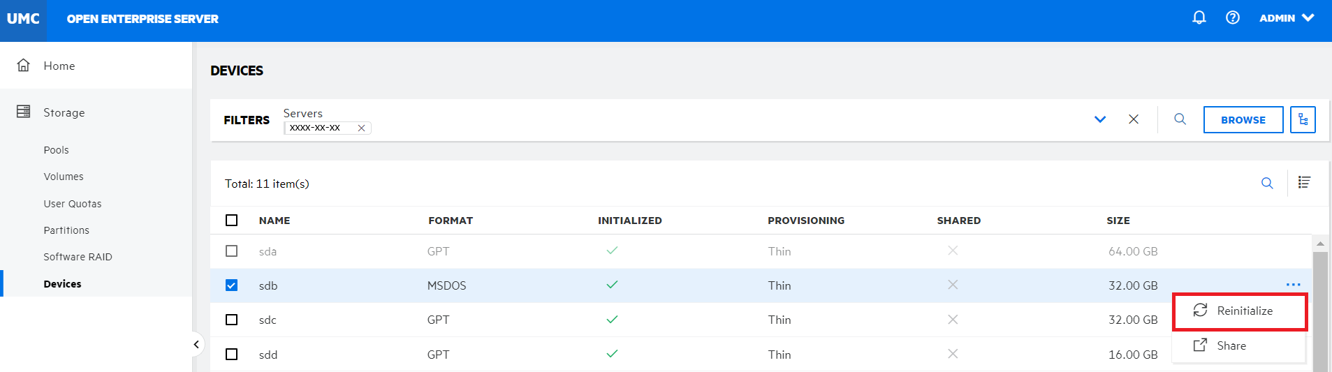 3. Select an initialized device, click More Options icon, and then select Reinitialize.