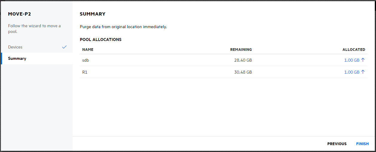 The pool is moved to the selected devices after the process is successfully completed.