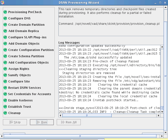 Task List : The task list displayed on the left pane of the wizard varies with the installation scenario. The configuration information provided during DSfW installation serves as input for the Provisioning Wizard to compute the list of tasks to be displayed.