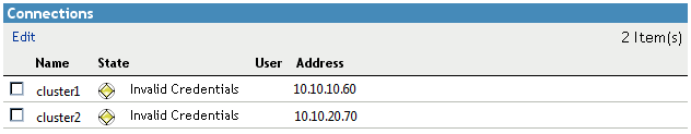 As additional peer clusters are enabled, the cluster is added in the Connections table.