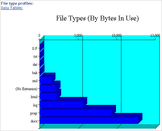 File Type Profiles indicates storage space usage by file types that are actually in use on your system, such as LOG, TDF, DAT, XML, EXE, and so on.