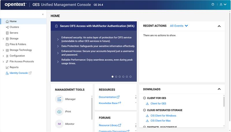 If UMC pattern is not installed, you are directed to the OES welcome page, which consists of the steps to install and configure UMC. Only Legacy management tools can be accessed from the OES welcome page. You can use the Application Delivery Marketplace to download the client softwares.